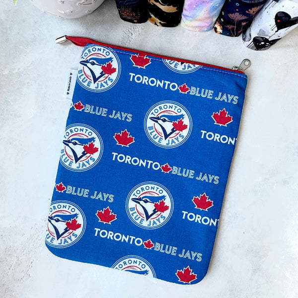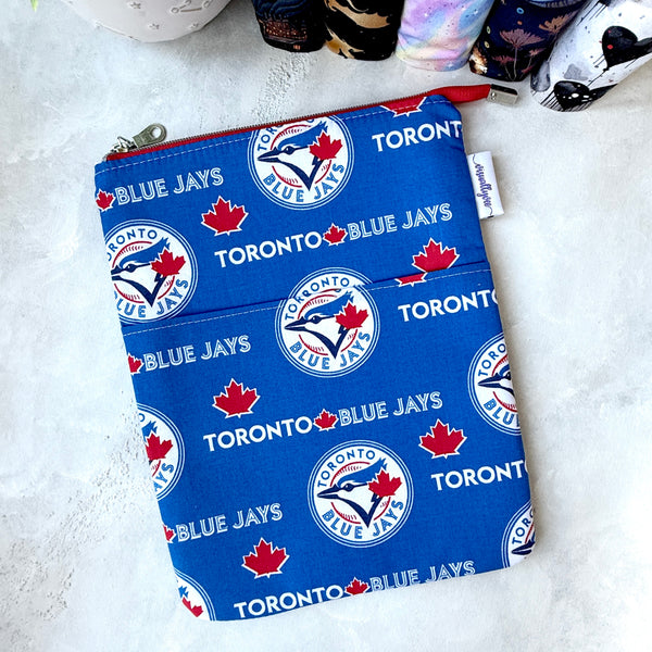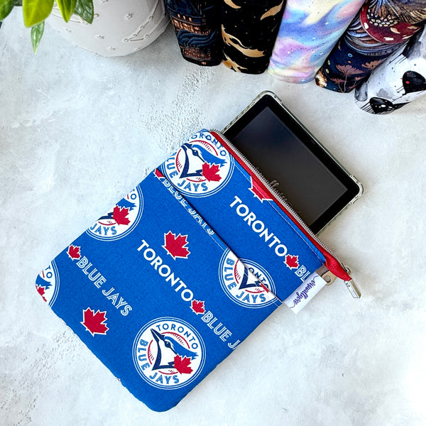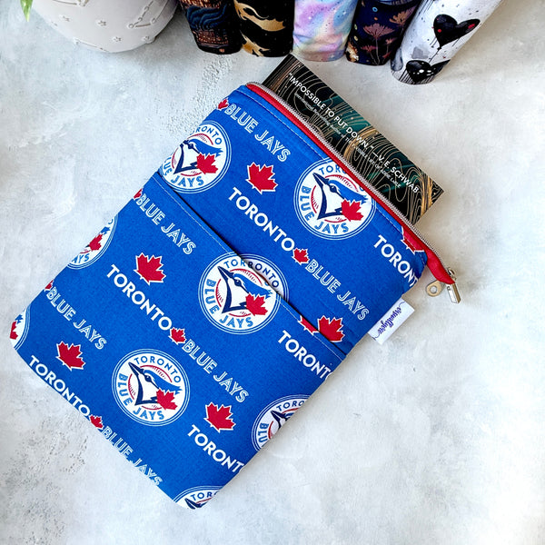 This sleeve is made from cotton with a slip pocket in the front big enough to hold your kindle or e-reader, bookmark, tabs, pens, highlighters or even your phone. The soft cotton lining, along with padding will keep your book safe and sound! The sleeve is finished off with a nylon zipper that lets the sleeve open really wide, so you can fit even the thickest book without it catching on the zipper teeth. The zipper is finished with a metallic zipper end for a polished look!